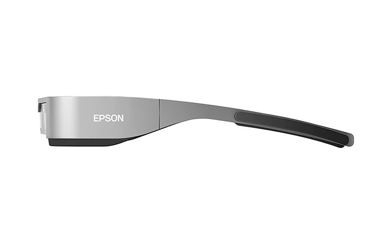 Gli Smart Glasses BT-300 sono connessi tramite cavo a un piccolo controller, contenente la batteria, con touch-pad e pulsanti di selezione.